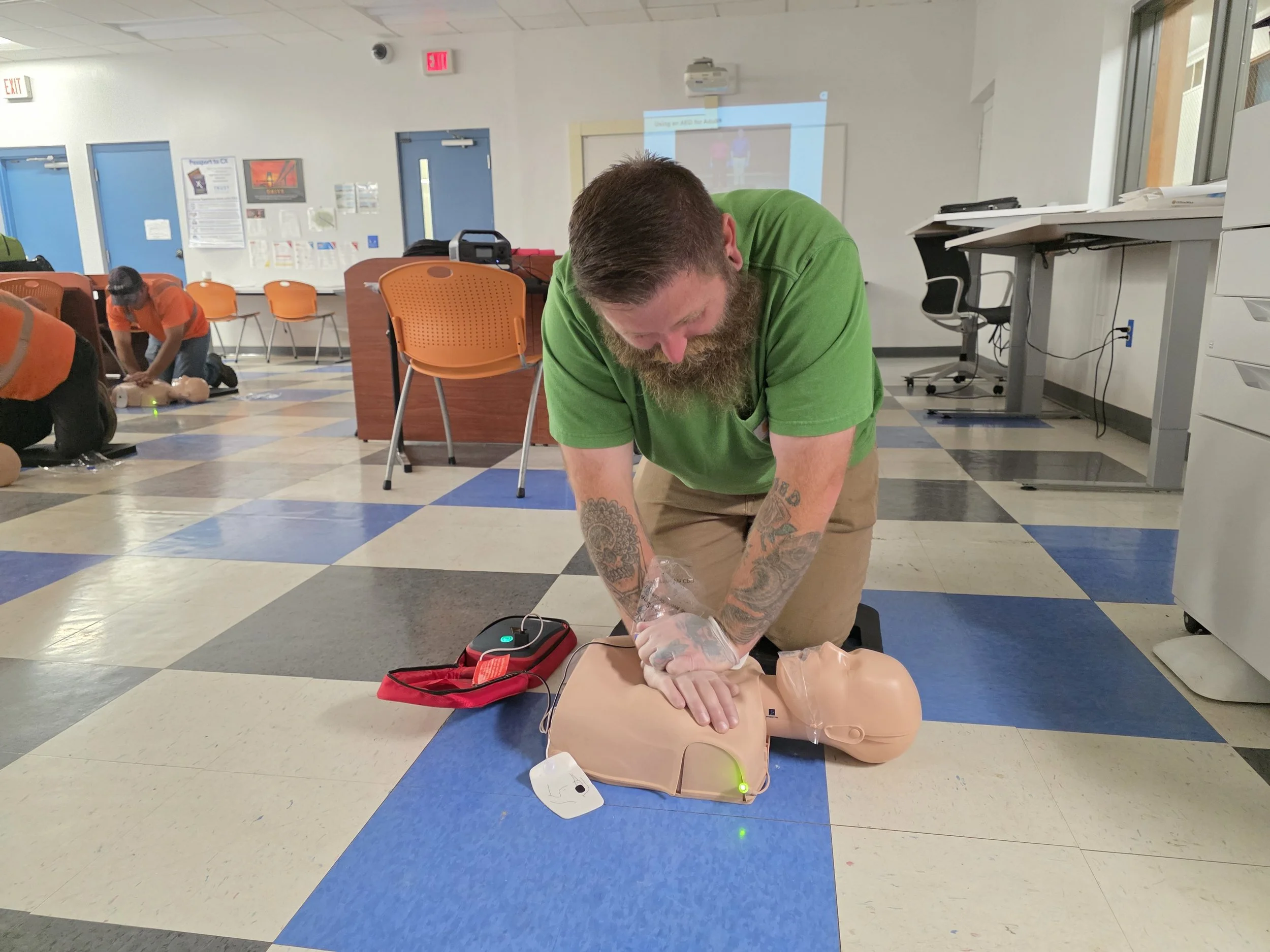 At AMcomm Inc., we prioritize creating a safe work environment, even in emergencies. To achieve this, every team member is required to complete comprehensive Adult First Aid, CPR, and AED training through the American Red Cross. This ensures that our crews are well-prepared to respond swiftly and effectively in any emergency, no matter where they are in the field. Our team members undergo regular recertification to ensure their skills remain current and effective. By equipping our teams with the knowledge and skills to act decisively and contact the appropriate authorities without hesitation, we provide a robust safety net for our employees and clients alike.